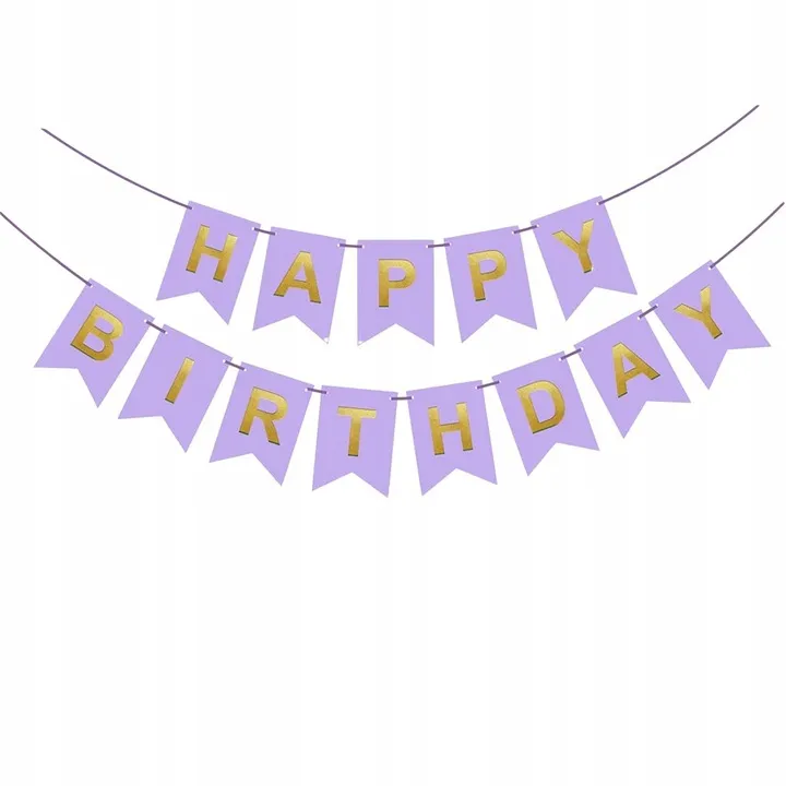 • 1 BANER urodzinowy - HAPPY BIRTHDAY (pastelowy fioletowy ze złotym nadrukiem)