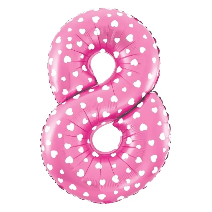 • 1 RÓŻOWY (w białe serduszka) BALON foliowy CYFRA - 40 cm