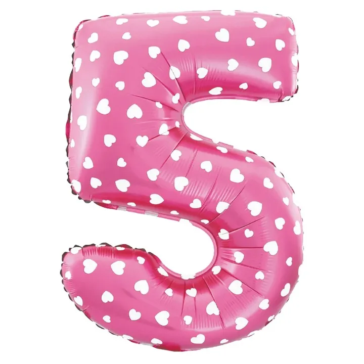 - 1 RÓŻOWY (w białe serduszka) BALON foliowy CYFRA - 40 cm
