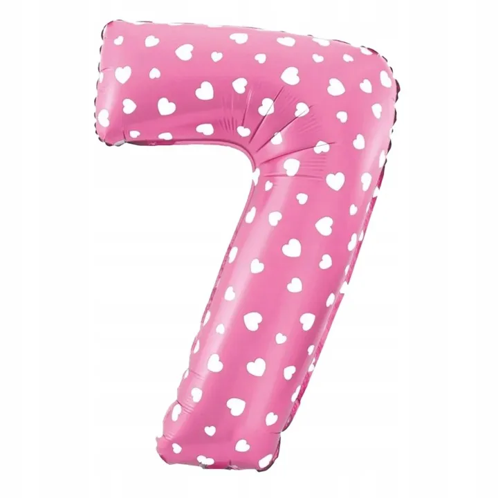 - 1 RÓŻOWY (w białe serduszka) BALON foliowy CYFRA - 40 cm