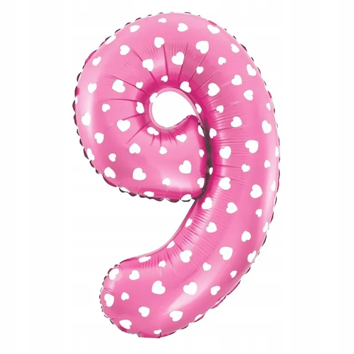 - 1 RÓŻOWY (w białe serduszka) BALON foliowy CYFRA - 40 cm