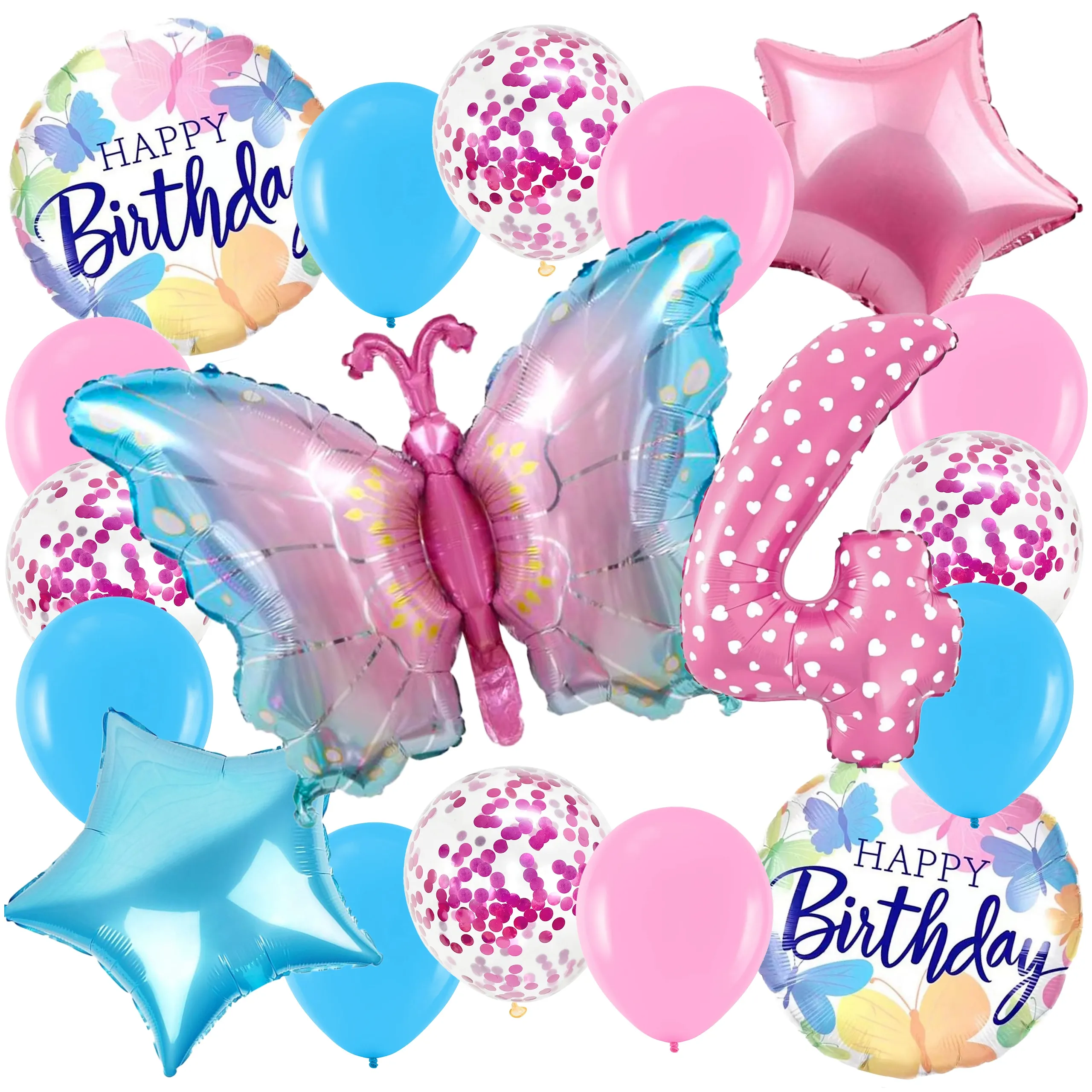 ZESTAW BALONÓW MOTYL MOTYLEK BALON CYFRA 4