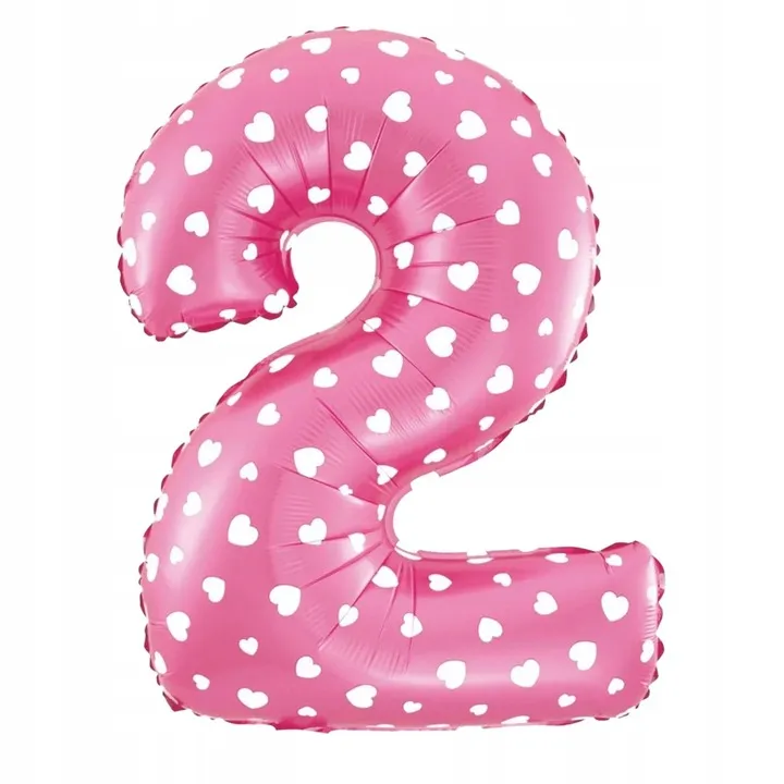 - 1 RÓŻOWY (w białe serduszka) BALON foliowy CYFRA - 40 cm