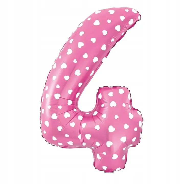 - 1 RÓŻOWY (w białe serduszka) BALON foliowy CYFRA - 40 cm